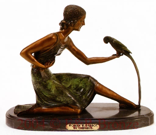 Woman With ParrotThis bronze statue by Demetre H. Chiparus is handmade