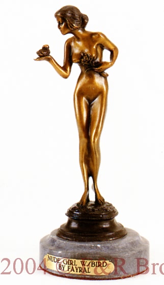 Nude Girl With BirdThis bronze statue by Fayral is