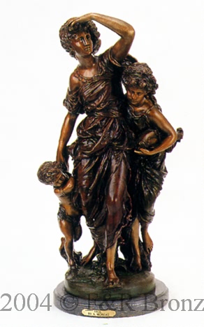 | VigilThis bronze statue by Auguste Moreau is handmade and cast in the traditional Lost Wax Casting Process. This is a multi step process that insures a quality bronze sculpture that may be passed down from generation to generation. Moreau did a good job at portraying this mother with her children. Would be a great gift for Mom!