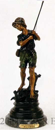 Boy With Fishing PoleThis bronze statue by L. Moreau
