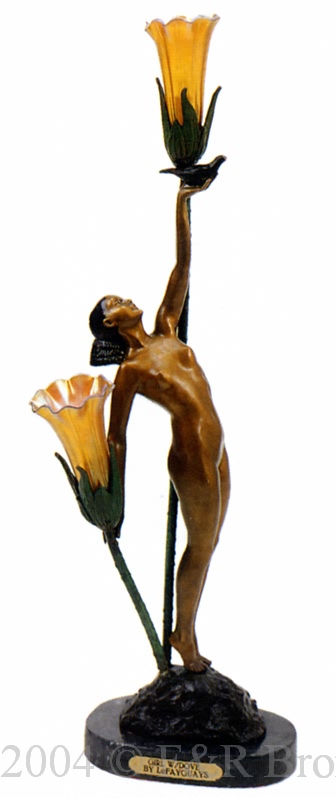 Girl With Dove LampThis bronze lamp by Lefaguays is