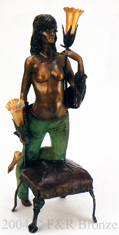 Woman On Stool LampThis bronze lamp by Jotocu is