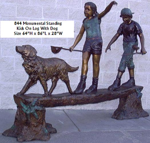 Experience the joyful spirit captured in the Standing Kids on Log with Dog bronze statue. Measuring an impressive 64 inches in height, 86 inches in length, and 28 inches in width, this remarkable piece is expertly handcrafted and cast using the traditional lost-wax casting method. Its exceptional artistry ensures it will become a cherished heirloom for generations to come.