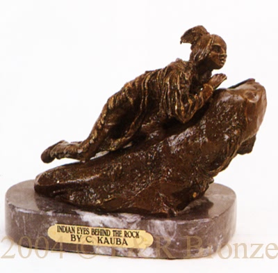Indian Eyes Behind The RockThis bronze statue by Carl Kauba