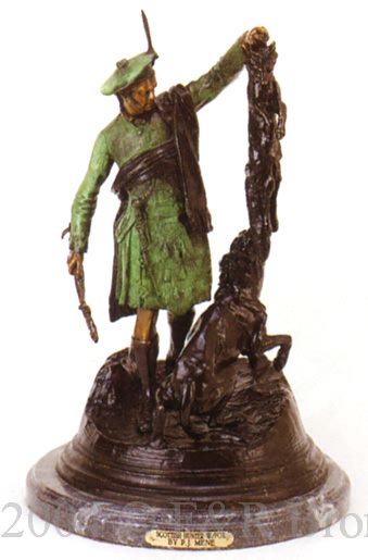 Scottish Hunter with FoxThis bronze statue by Pierre