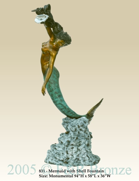 Mermaid with Shell FountainThis bronze statue measures 94”