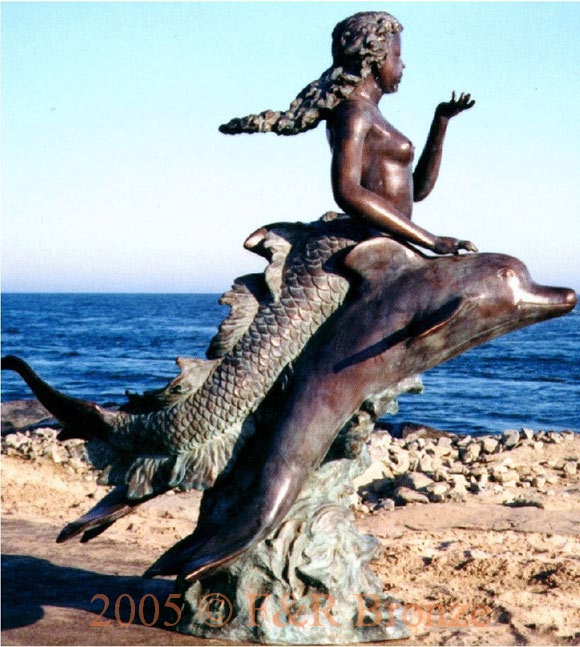 Mermaid Riding Two Dolphins Fountain |  |  |