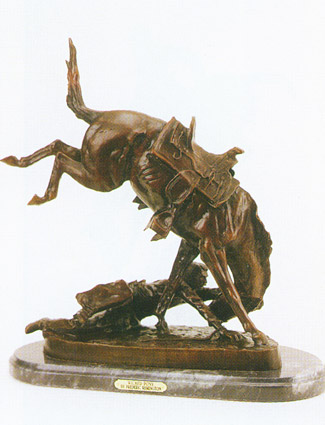 | Wicked PonyThis exquisite "Wicked Pony" bronze statue by Frederic Remington is a masterpiece of traditional artistry, meticulously crafted through the time-honored lost wax casting process. Each detail of this dynamic sculpture is brought to life with an artist-applied, hand-rubbed patina, accentuating the fluidity and raw energy characteristic of Remington's work. Beyond its artistic value, this statue exudes an air of luxury and sophistication, making it an ideal addition to elevate the ambiance of any home or office space. Its presence not only enhances the aesthetic appeal but also imbues the surroundings with a sense of timeless elegance and a touch of the Wild West spirit, effortlessly transforming an ordinary room into a gallery of fine art.