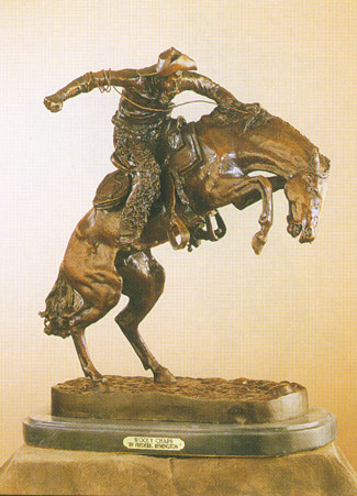 | Wooly ChapsThis piece Wooly Chaps, also known as the Bronco Buster, is the updated version of The Bronco Buster. When Remington learned how to make changes in the wax, when using the Lost Wax Casting Process, it enabled him to modify and perfect previous works. Each piece cast in Lost Wax Process is individual and unique in its own way. One is never the same as each is handmade by the artist and foundry workers. We still cast these bronzes in the traditional way that Remington used 100 years ago.