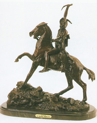 | ScalpDiscover the exquisite beauty of Frederic Remington's "The Scalp," a masterfully crafted bronze statue that embodies the pinnacle of artistic expression and luxury. This exceptional piece is created using the time-honored lost wax casting process, ensuring every detail of Remington's original vision is captured with precision and clarity. The statue is further enhanced by an artist-applied, hand-rubbed patina, which accentuates its intricate textures and brings the scene to life. Ideal for both home and office settings, "The Scalp" not only serves as a stunning centerpiece but also elevates the ambiance of any space. Its presence exudes an air of sophistication and cultural appreciation, making it a treasured addition for collectors and art enthusiasts alike. This Remington bronze statue is not just a decorative item, but a symbol of luxury and a testament to the enduring legacy of fine art.