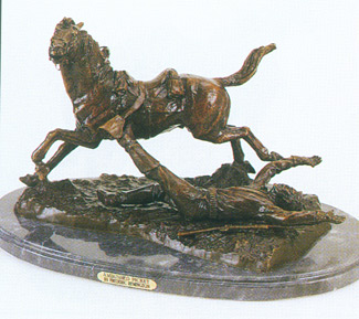 | Ambushed PicketIntroducing the "Ambushed Picket" bronze statue, a magnificent work of art meticulously crafted through the traditional lost wax casting process. This exquisite piece pays homage to the iconic American artist Frederic Remington, and its intricate details reflect the dedication and skill of the sculptor. With a hand-rubbed patina, each statue possesses a unique, timeless beauty that will elevate the atmosphere of any home or office space. A symbol of luxury and refinement, this Remington-inspired masterpiece captures the spirit of the American West and brings a touch of sophistication to your surroundings. Elevate your décor and evoke a sense of history with this stunning bronze statue, a true testament to craftsmanship and artistry.