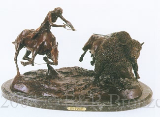 Double Buffalo HuntThis bronze is handmade and cast in the