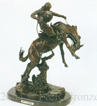 | Bronco TwisterThis bronze statue by Charles Russell is handmade and cast in the traditional Lost Wax Casting Process. This insures a quality bronze sculpture that may be passed down from generation to generation. The Bronco Twister is Charles Russell’s most famous bronze piece. It has been said that it may be one of the best bucking horses done during that era. this is a great addition to any western decor. Nothing is more American than the American west.